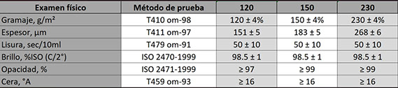 Gramaje: 120 gr, 150 gr y 230 gr
